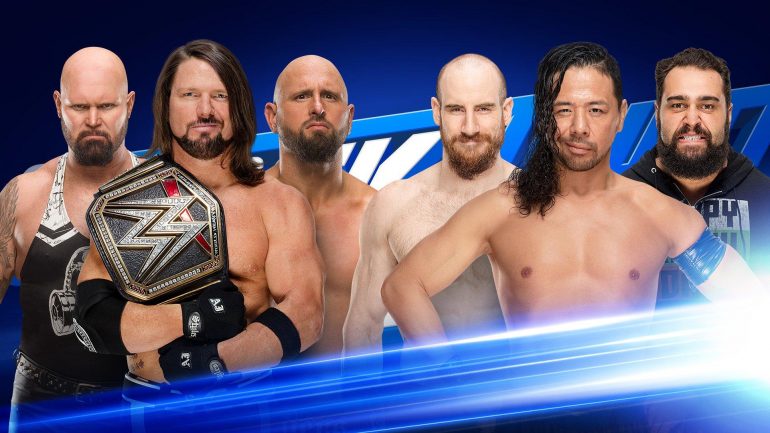 AJ Styles, Anderson and Gallows vs. Aiden English, Rusev and Shinsuke Nakamura