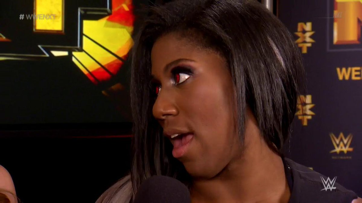 In the back, Ember Moon was interviewed and challenged Mercedes Martinez to a match next week.