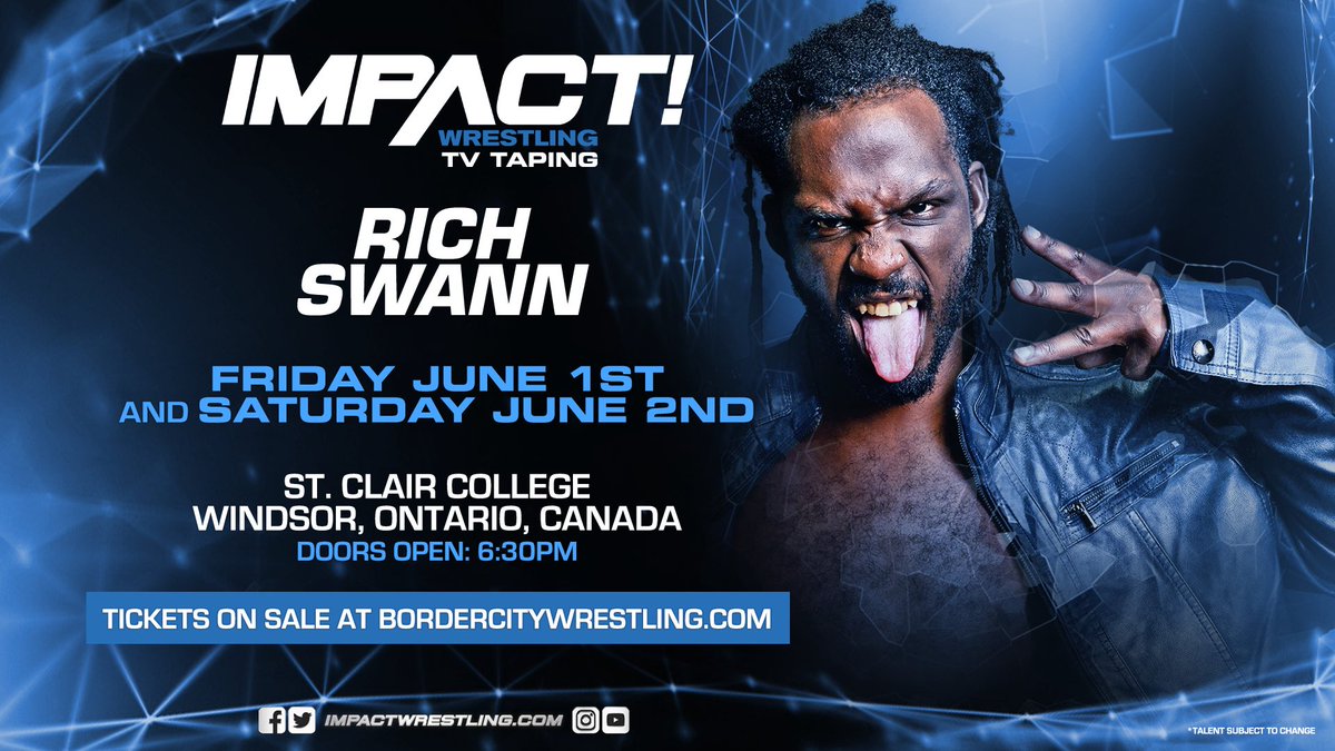 Making his IMPACT debut at our June 1st and 2nd tapings at @StClairCollege in Windsor, ON – @GottaGetSwann!