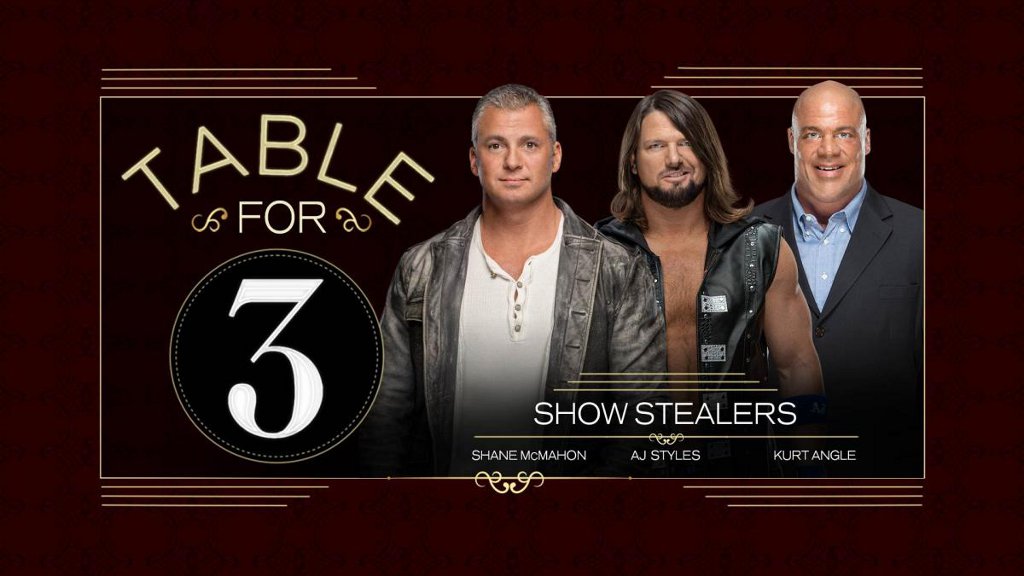 Following the end of Monday’s episode of Table For 3 with Shane McMahon, Kurt Angle, and AJ Styles as the guests, WWE aired an ad for Impact Wrestling’s Global Wrestling Network service. Footage from Impact was shown during the episode while the ad directed viewers to subscribe to GWN to see more matches from Angle’s and Styles’ careers in Impact.