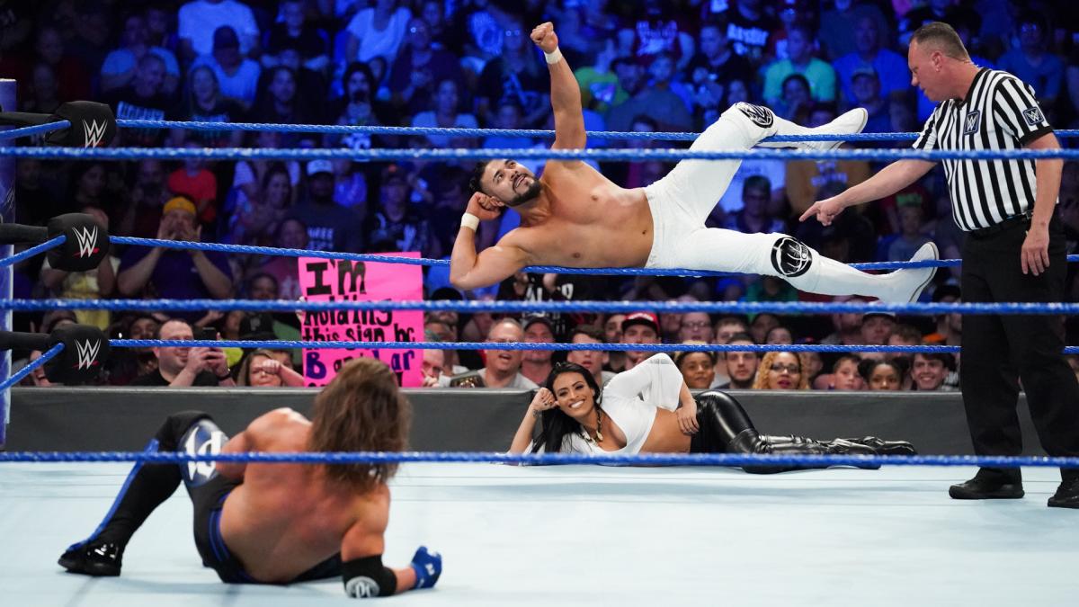 WWE officials were reportedly “really impressed” with Andrade “Cien” Almas in his match against AJ Styles on SmackDown last week, according to PWInsider, and there is talk of giving a big push to the former NXT Champion.