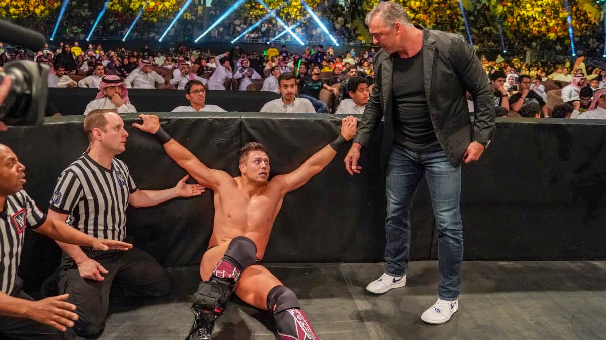 The Miz was not actually injured at Crown Jewel. WWE did an angle where he “blew out his knee” in the World Cup final match against Dolph Ziggler and was unable to wrestle.
