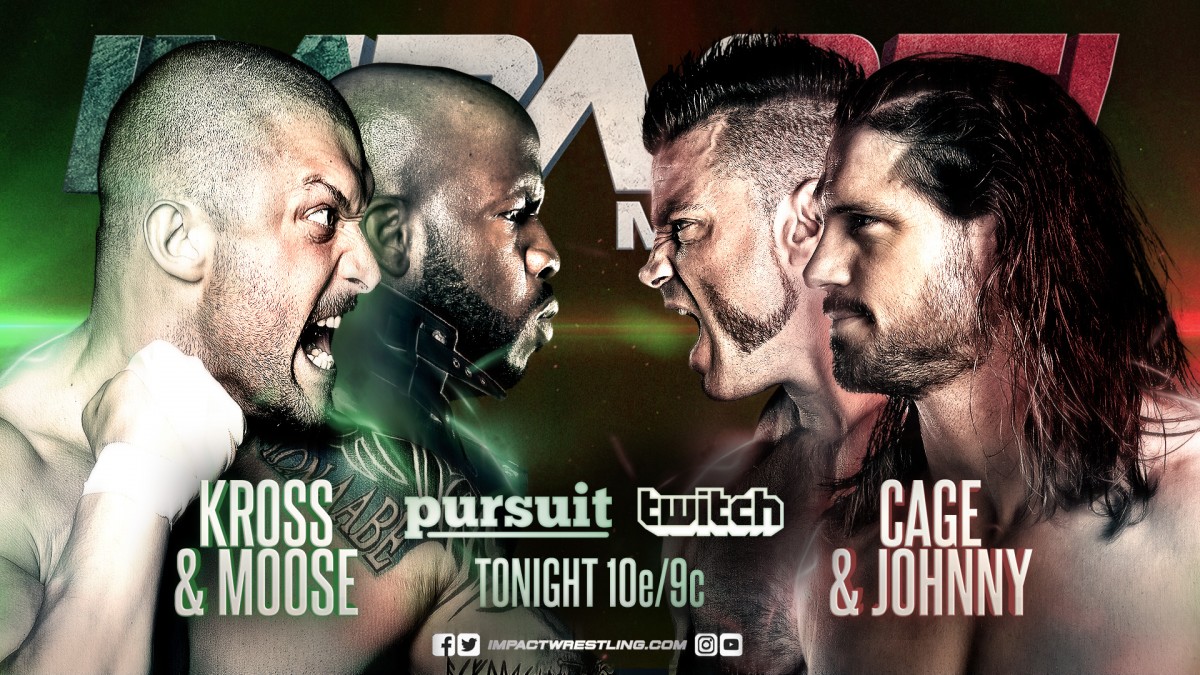 Moose and Kross wear down Impact on their side of the ring, preventing him from tagging in Cage. Kross locks in a modified Dragon Sleeper on Impact but he fights out of it. Impact makes the tag to Cage and he goes on a rampage! Cage hits Moose with a German suplex for a two count. Kross breaks up a move attempt by Cage so Kross gets hit with a German suplex of his own. Impact tags himself into the match. Moose hits Cage with Go to Hell but the referee won’t count because Impact is legal! Impact hits Moose with a top rope corkscrew crossbody but Kross breaks the follow-up pin attempt. Impact attempts to kick Kross but he ducks, causing Impact to nail Cage! Cage is about to fight back when Moose hits Impact with a devastating spear! Moose pins Impact as Cage watches on to win.