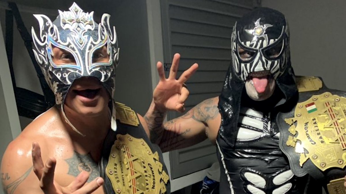 #AndNEW @luchalibreaaa World Tag Team Champions @PENTAELZEROM and @ReyFenixMx #LuchaBros pic.twitter.com/8qc8q6Dug9