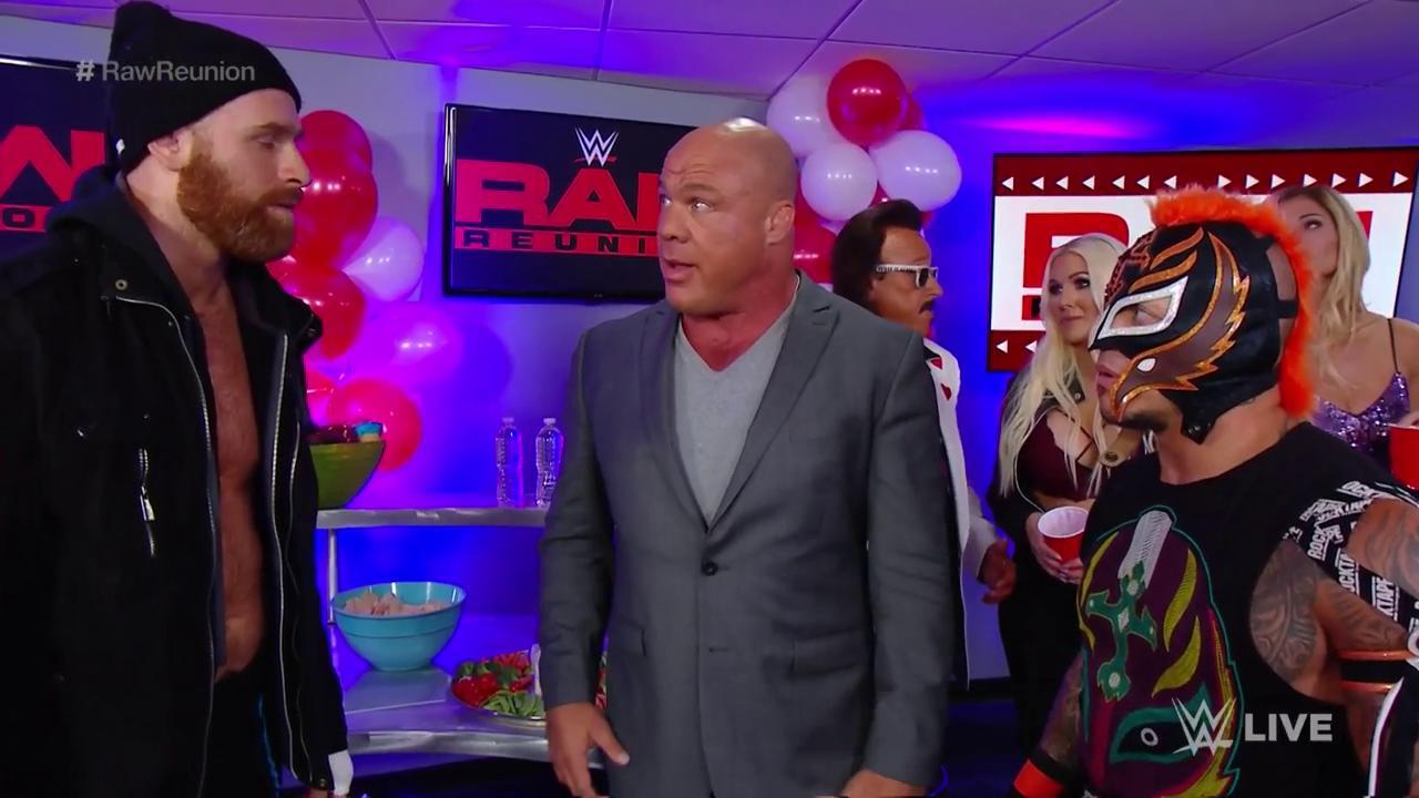 Backstage: Sami Zayn, Rey Mysterio, Kurt Angle