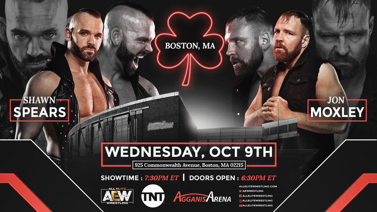 AEW announced that Jon Moxley will face Shawn Spears in week two of their TNT show on October 9 in Boston, MA at the Agganis Arena.