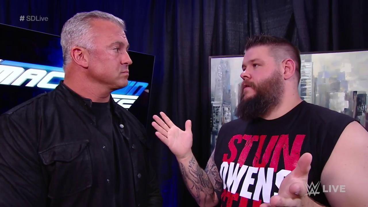 McMahon looks at Kevin and says he will take it under consideration and to excuse him. Kevin Owens walks away.