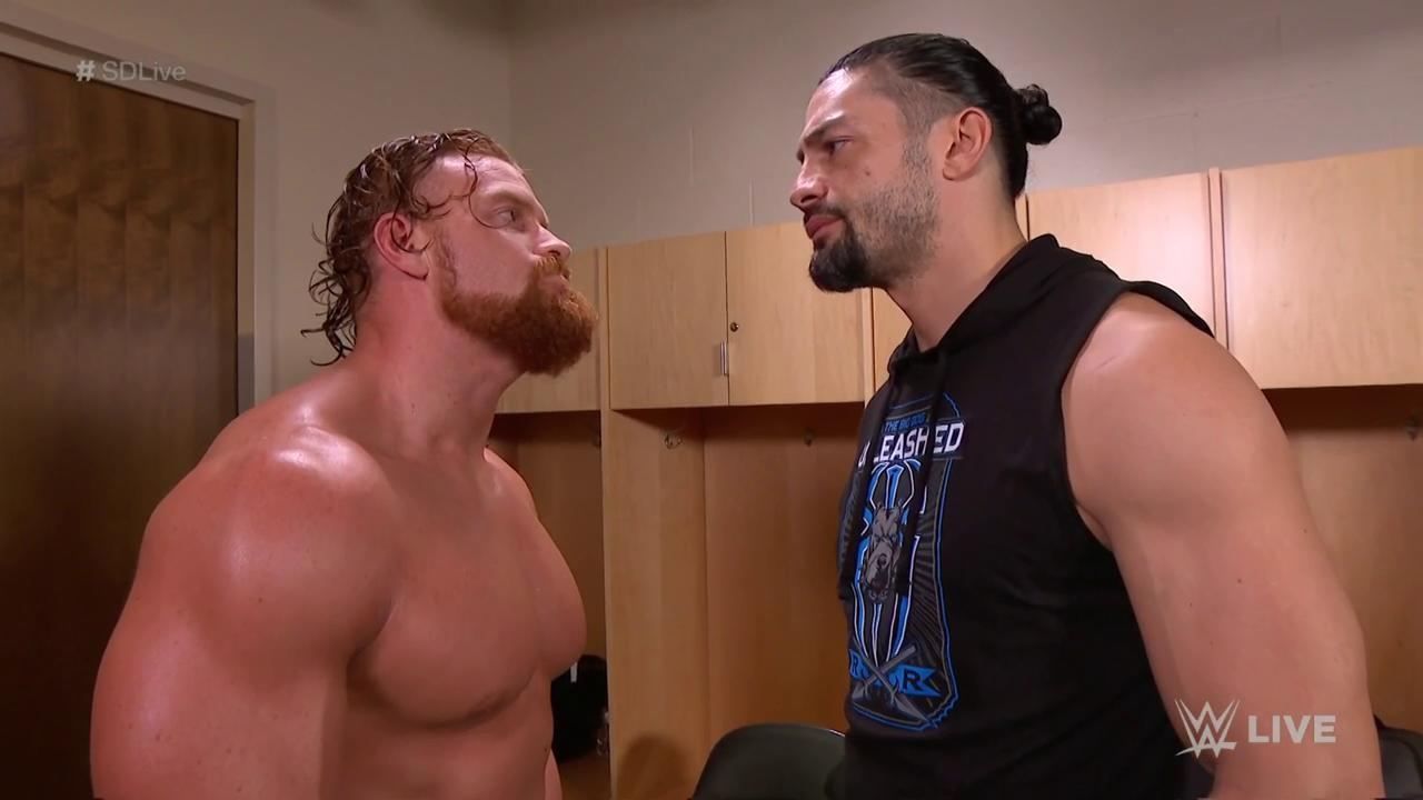 We cut backstage to see Buddy Murphy preparing for his match. In comes Roman Reigns. The two go face to face. Roman says they can have a conversation, he wants to know if he is lying to him or to Bryan and Rowan. Murphy says he is pretty sure he saw Rowan. Roman says he needs a yes or no, not a pretty sure. Murphy says he was only trying to help. he is pretty sure and he was just trying to help Roman out. Roman says he hopes so because if Murphy lies to him again, he will whoop his ass.