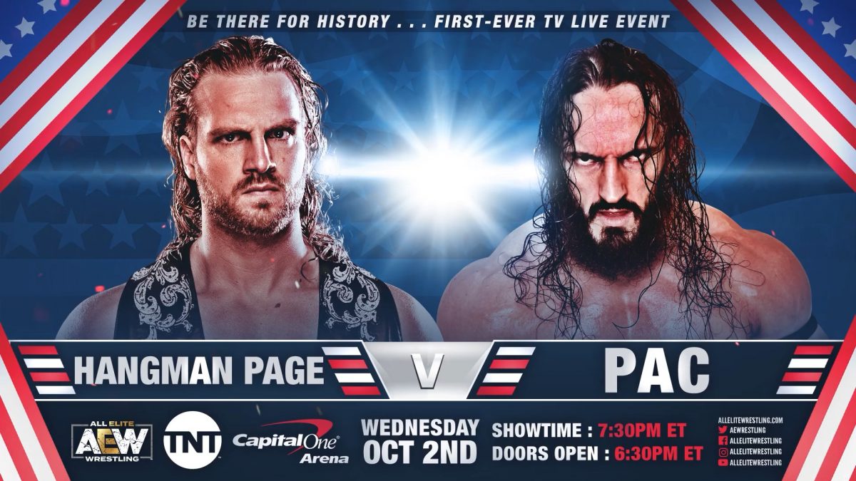 Hangman Page vs. PAC has been announced for AEW Dynamite’s first show on TNT on October 2 in Washington, DC at the Capital One Arena.