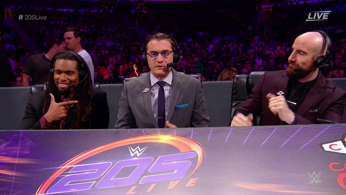 He was replaced tonight on 205 Live by NXT wrestler Dio Maddin, who joined Vic Joseph and Aiden English.
