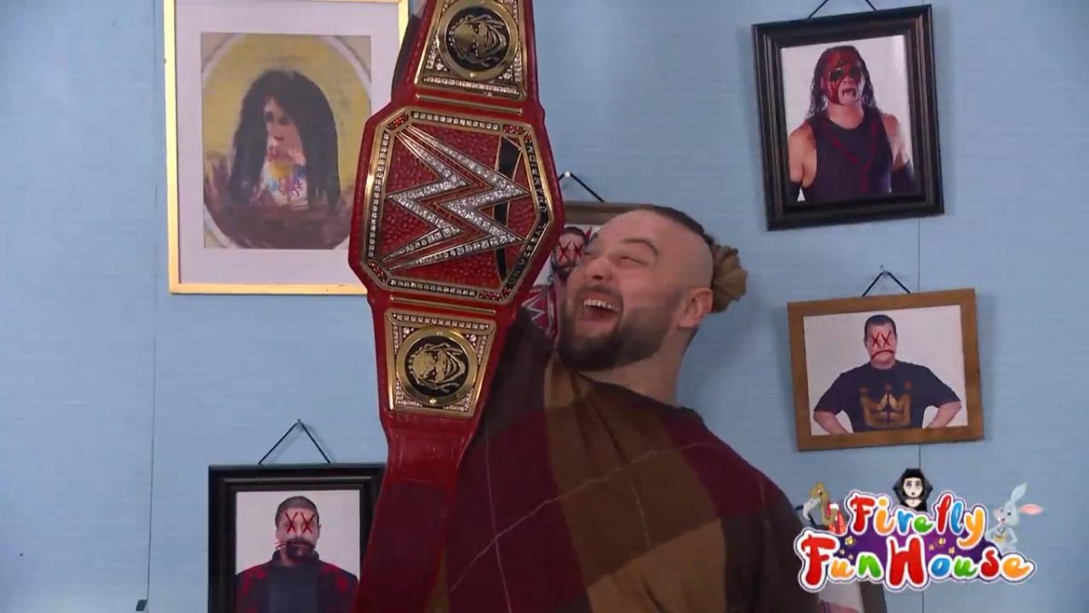 Bray Wyatt was on WWE Backstage on FS1 tonight with a new Firefly Fun House video. WWE advertised that he was going to reveal a “personal touch” on the Universal Championship belt, but it was just new side plates with The Fiend on them.