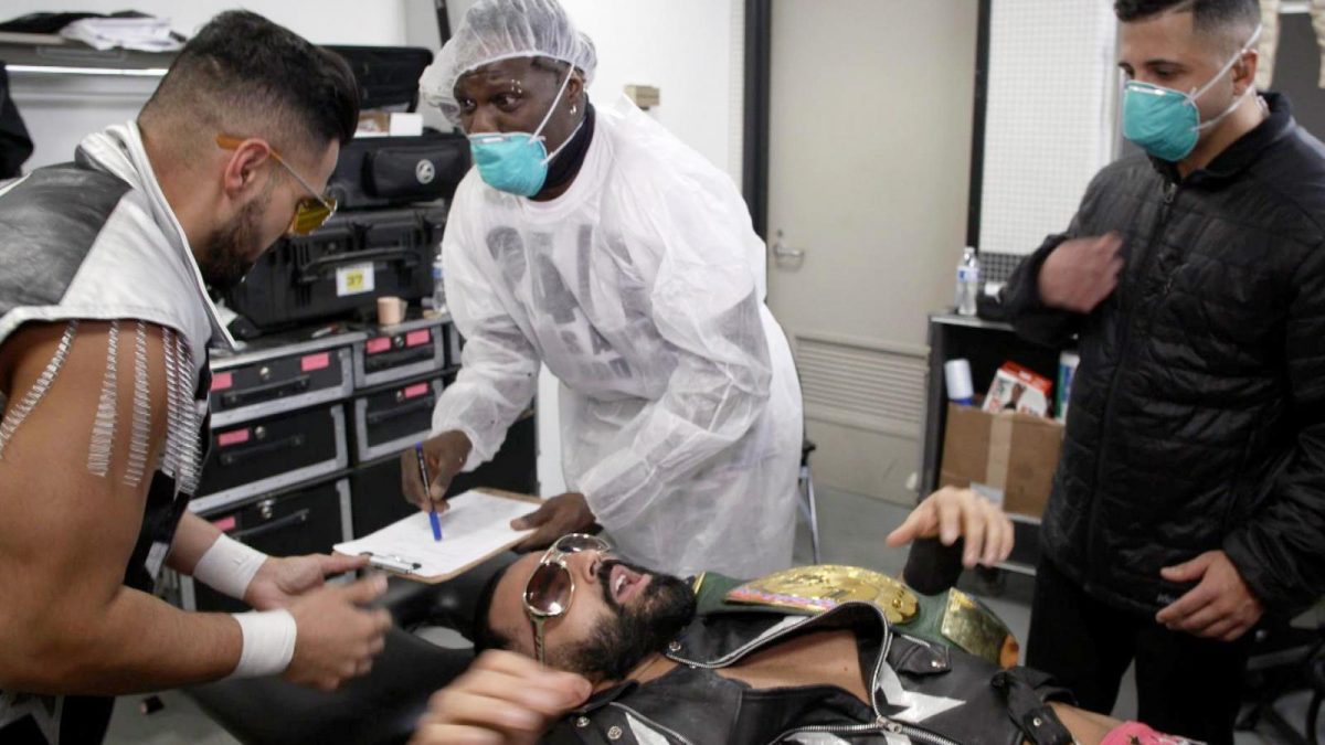 After Singh was beat down by Erick Rowan, he was sent to the back for “medical attention” and R-Truth, dressed as a doctor, attacked him and pinned him to win back the title.