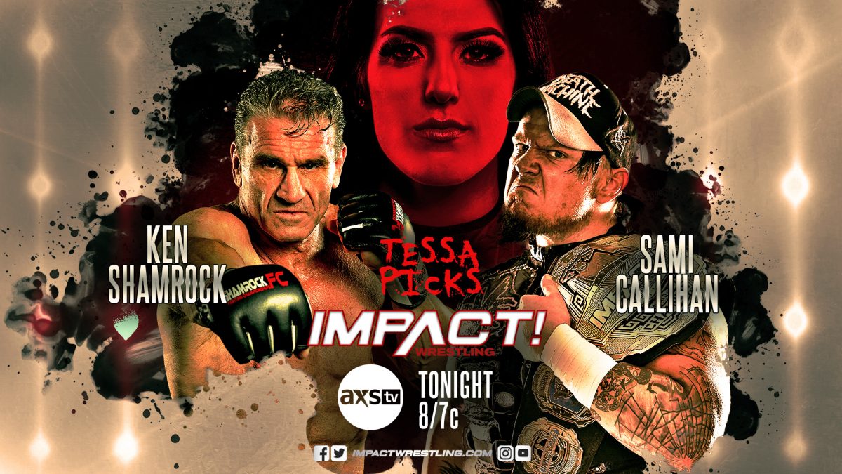 Dave Crist joins him and Fulton in a 3-on-1 beatdown until Ken Shamrock makes the save. Tessa picked Shamrock as Sami Callihan’s opponent and that match is about to get underway.