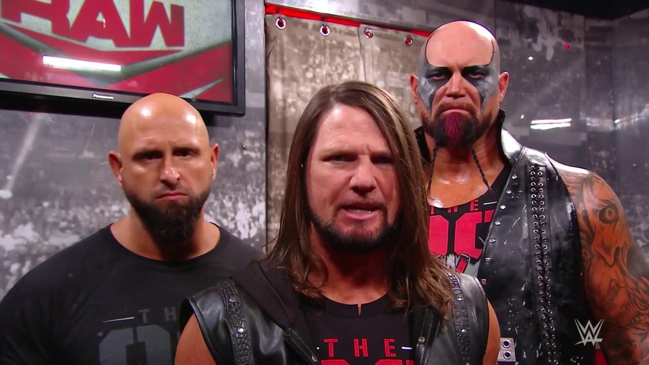 The O.C. comes out to the stage. AJ Styles looks furious. Styles can only say, “Randy Orton.” Luke Gallows says McIntyre is spinning his tires. Gallows says Orton ruins lives. Karl Anderson says Orton ruined “Uncle Allan’s” life. Orton is the reason Styles lost the United States Title. Styles says he isn’t ok. It’s Orton’s fault. What would make it all better is if he got his hands on Orton. Styles doesn’t care what kind of match it is, he wants Randy Orton tonight.