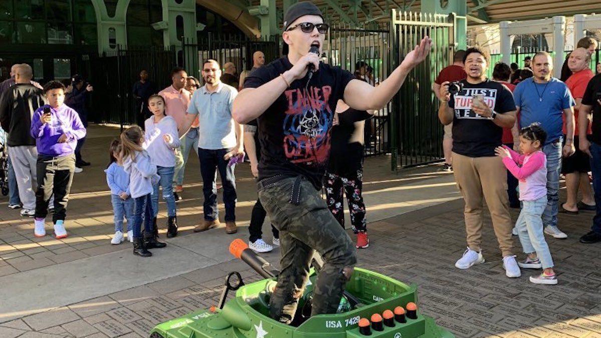 Guevara was outside of Minute Maid Park in Houston before the show with a mini tank and a microphone, spouting off some Steiner math.