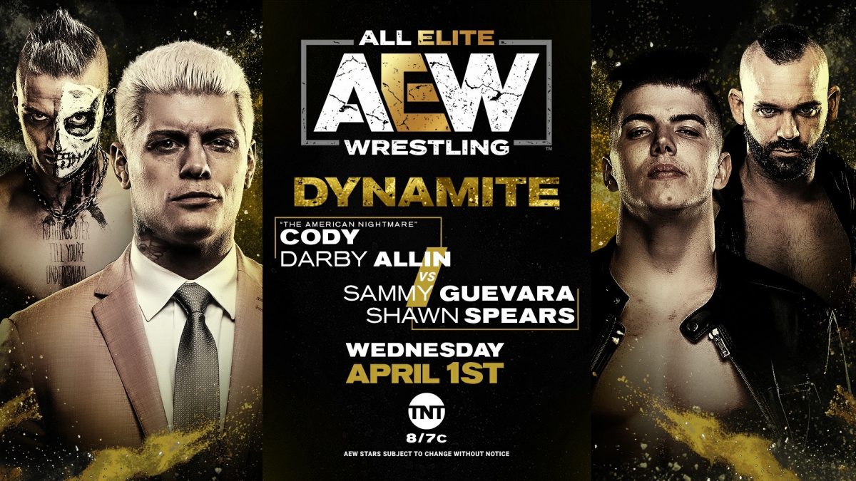 Tomorrow night on Dynamite. The four men who are in the first half of the TNT Championship Tournament Bracket will be in tag-team action!@DarbyAllin & @CodyRhodes vs. @SammyGuevara & @Perfec10n.