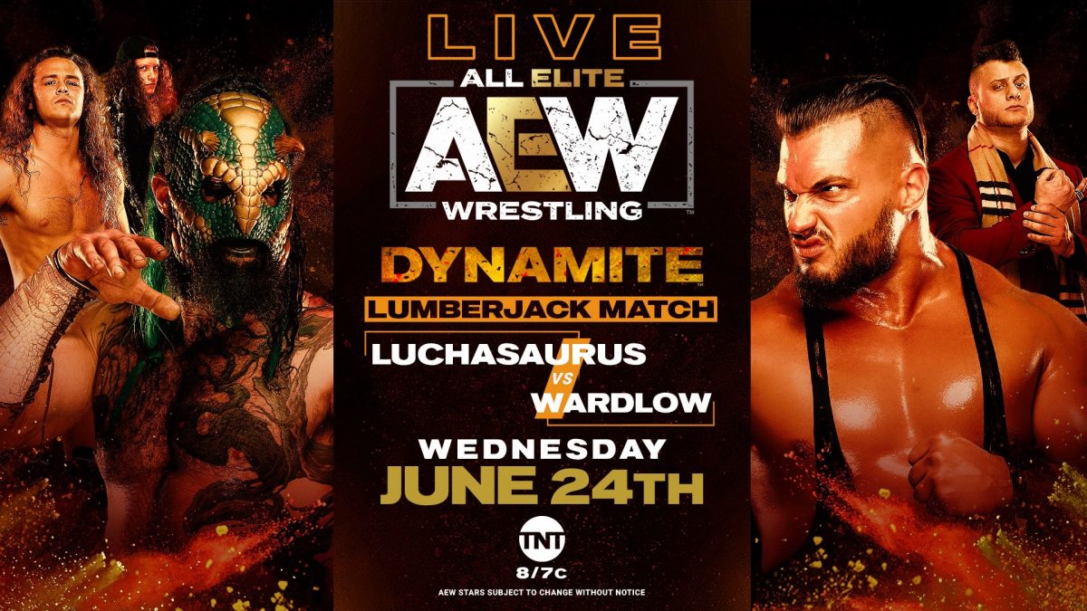 20 minute time limit. Luchasaurus opens up with offense. Wardlow quickly comes back on the offense. Luchasaurus sends Wardlow outside the ring and the lumberjacks attack Wardlow. Back in the ring, Wardlow comes back on the offense slamming Luchasaurus on the mat. Luchasaurus tries to come back, but Wardlow counters with a slam. Luchasaurus comes back with chops to the chest and clothesline, leg sweep and a moonsault press. Luchasaurus attempts a chockeslam, but Wardlow blocked it. Both men are on the second rope. Wardlow superplexes Luchasaurus. Warldow goes for the cover, but only gets a two count. Both men then exchange right hands. Luchasaurus counters an attempted slam by Wardlow, goes for the pin, but only gets a two count. The fight goes outside the ring and Wardlow body slams Luchasaurus on the steps. Both men are outside the ring on the stage and continue to exchange blows. Brad Cutler attempted to bring Wardlow back in the ring, but was thrown into the other lumberjacks. As other lumberjacks attempt to get Wardlow in the ring, he throws the lumberjack into the other lumberjacks. Luchasaurus then does a shooting star press into the other lumberjacks. MJF tried to get involved, but Jungle Boy knocked him off the ring apron. Both men are back in the ring, Wardlow then lowblows Luchasaurus and does the F-10 for the three count.