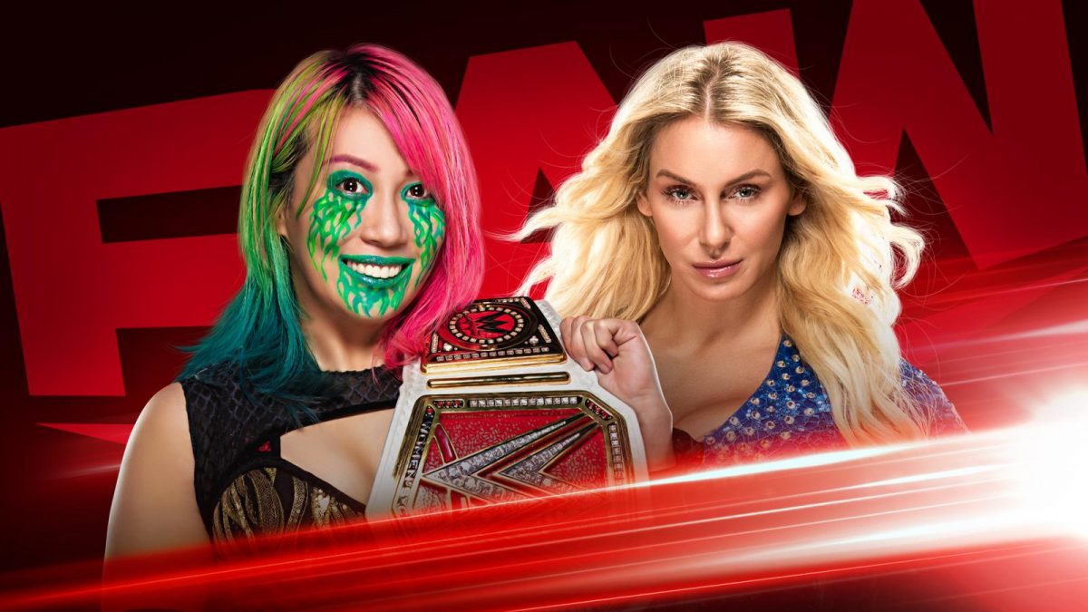 Asuka and Charlotte Flair will wrestle later tonight. Flair takes Asuka down with a flying clothesline and holds up the Raw Women’s Championship.