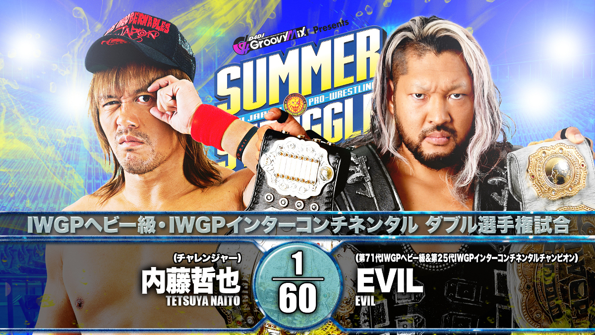 - IWGP Heavyweight & IWGP Intercontinental Double Championship match – Tetsuya Naito vs. EVIL (c)