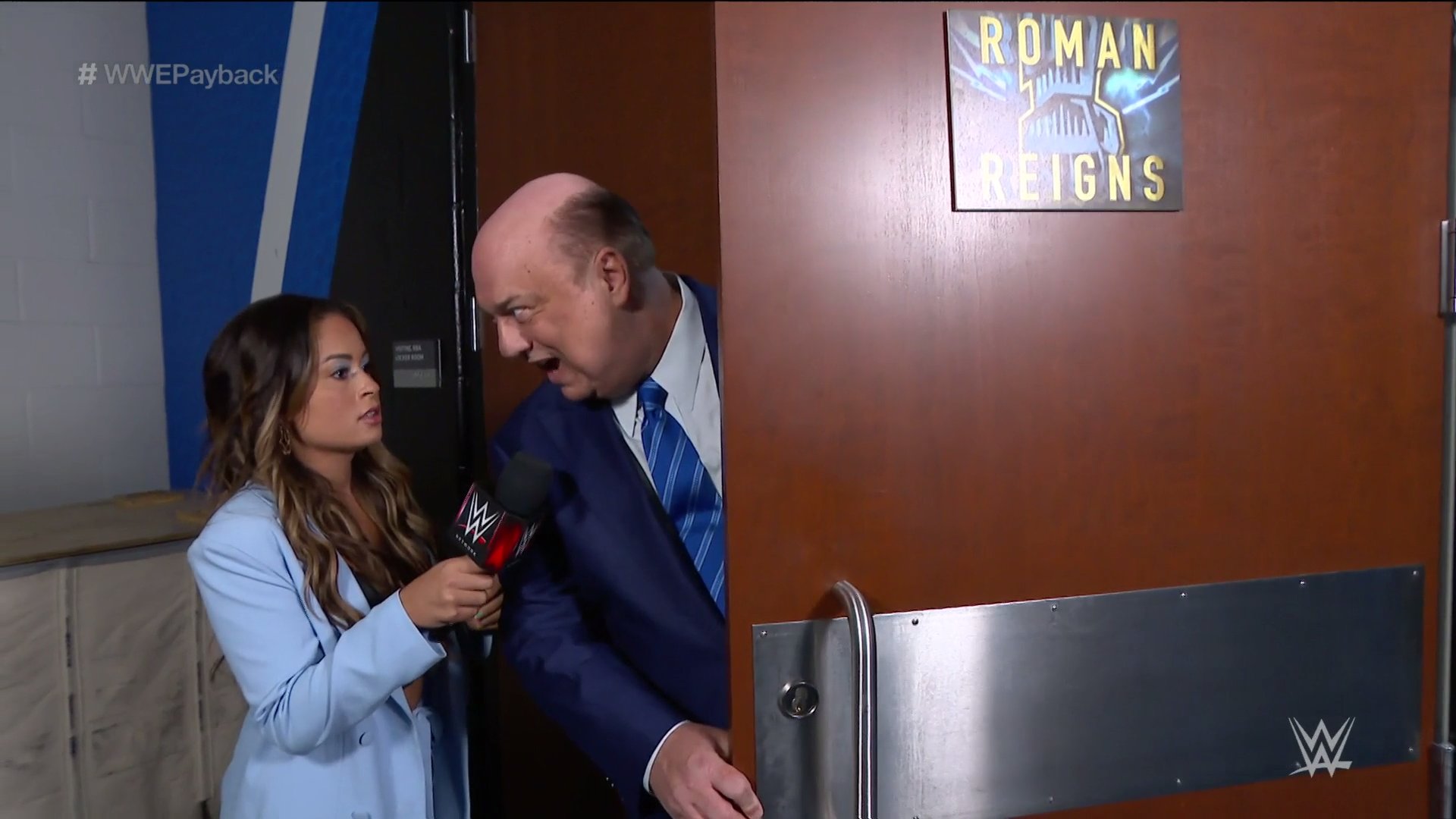 Kayla Braxton catches up with Paul Heyman backstage. She asks about Roman Reigns not signing the contract. Heyman says Reigns said he would sign it. She asks if she can talk to Reigns, and Heyman says she cannot.