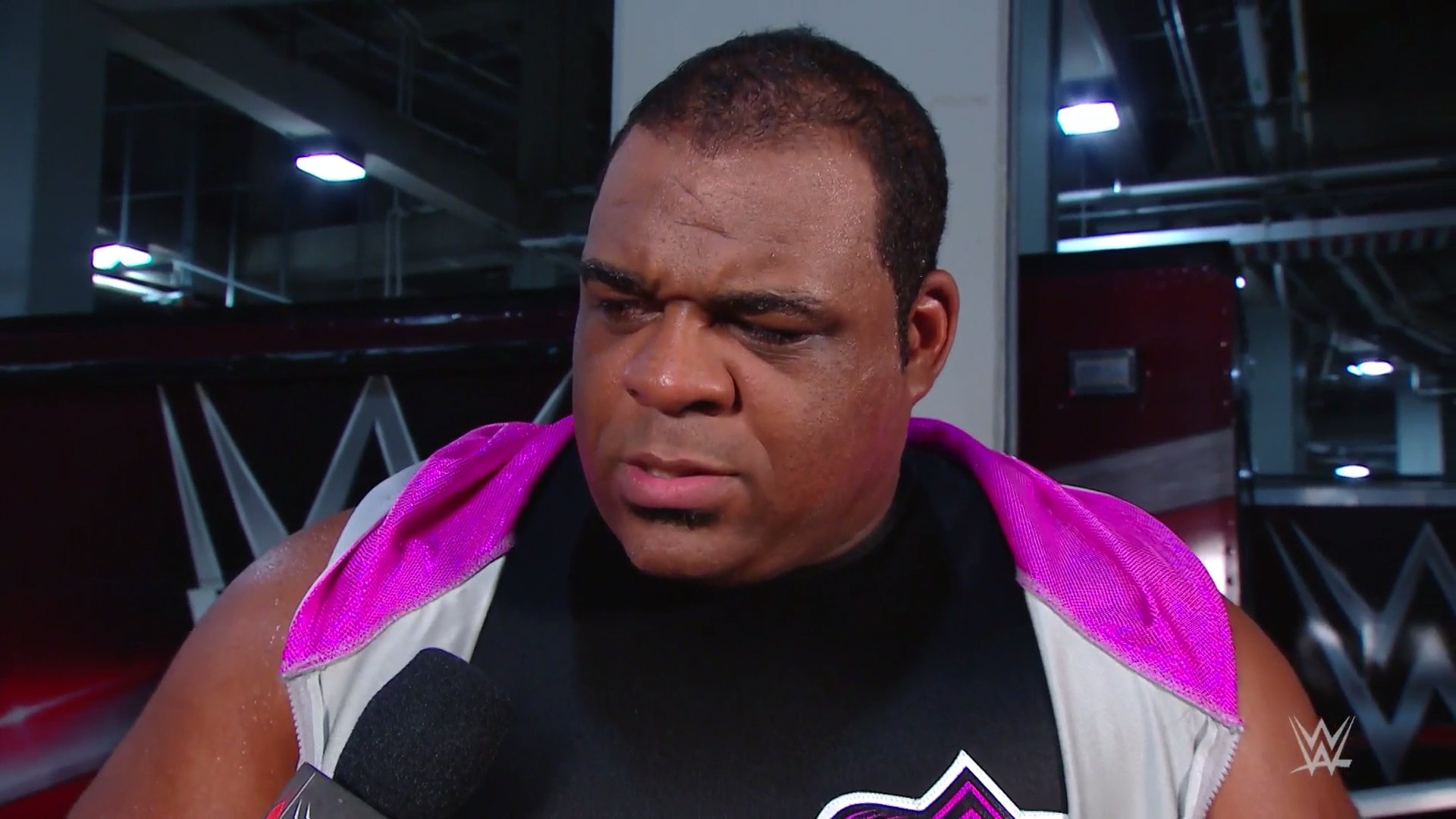 Orton circles around him and confirms his name is Keith Lee. Orton says if he wants to fight him right here and now… maybe later. Orton rolls out of the ring and leaves. Lee smiles.