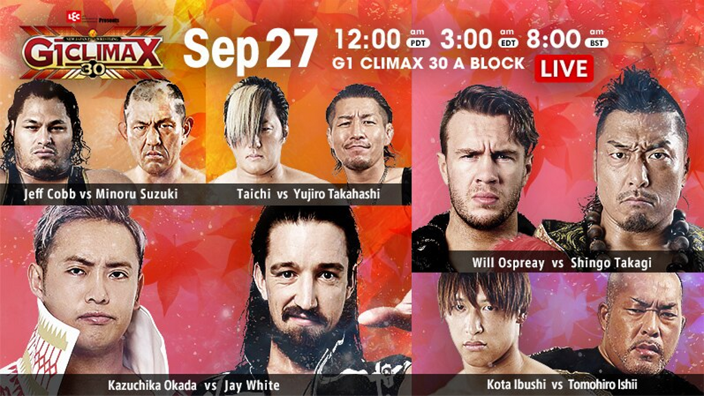 Here is the card for Night 6 of NJPW’s G1 Climax 2020 tournament, which takes place on September 29th at the Korakuen Hall in Tokyo, Japan. Night 6 airs live on New Japan World starting at 5:30AM EST.