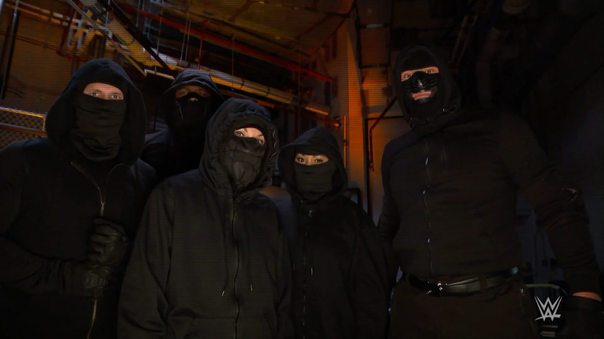 During tonight’s Raw, RETRIBUTION showed up on the video screen after a Cedric Alexander vs. Ricochet match, with five main members on screen.