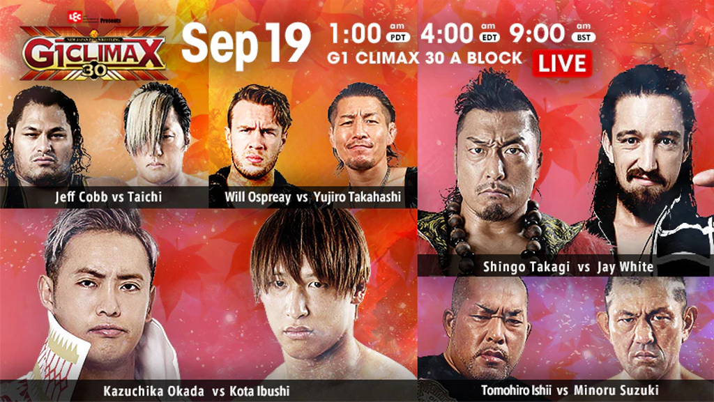 Here is the card for Night 2 of NJPW’s G1 Climax 2020 tournament, which takes place this Sunday at the Osaka Prefectural Gym in Osaka, Japan. Night 2 airs live on New Japan World starting at 1:00AM EST.
