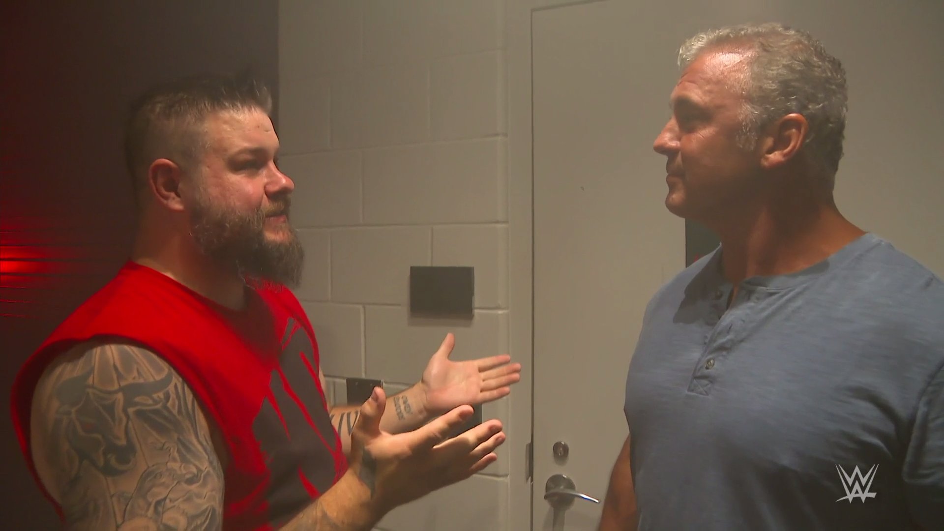 Kevin Owens is shown outside of Raw Underground with Shane McMahon and the tall security guard. McMahon says he knows they’ve had their differences, but he still wishes him luck. Owens says McMahon will always be a jackass. McMahon gets the door for him. The security guard looks surprised Owens talked to him that way.