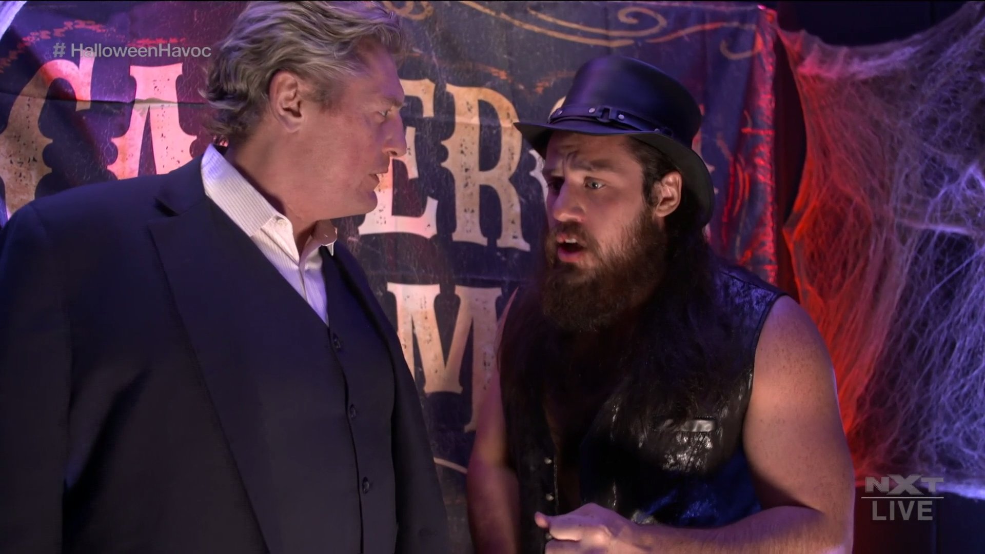 Cameron Grimes is freaking out backstage about his Haunted House of Terror match. NXT General Manager William Regal walks up to him. Grimes says he wanted a match in the ring, not a haunted house. Regal tells him to follow him.