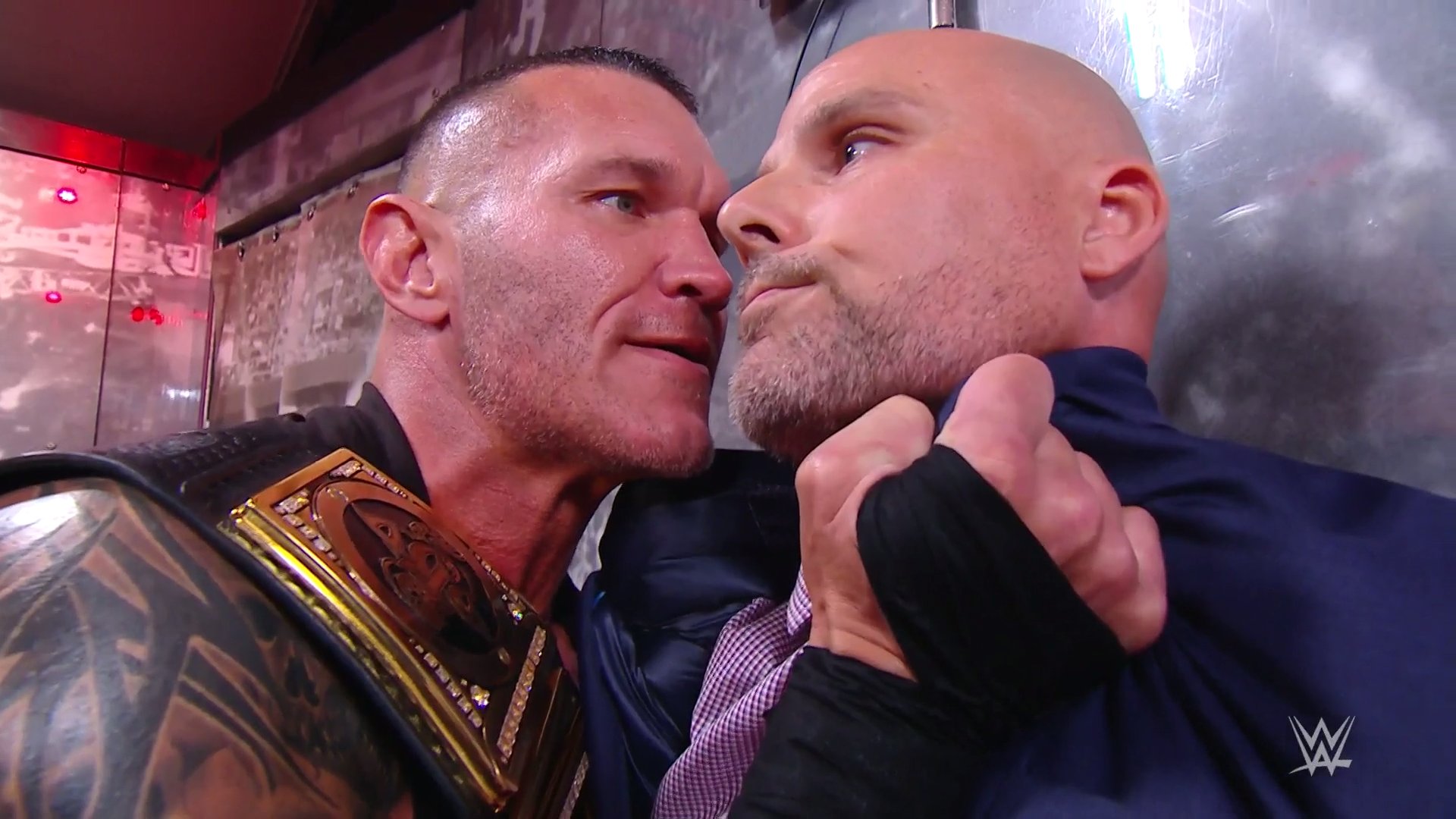 WWE Champion Randy Orton is backstage when WWE Official Adam Pearce walks up to him. Pearce says Orton will defend the WWE Championship next week on Raw against Drew McIntyre. Orton is furious and pins Pearce to the wall. Orton tells him to tell the staff in Stamford to go to hell.