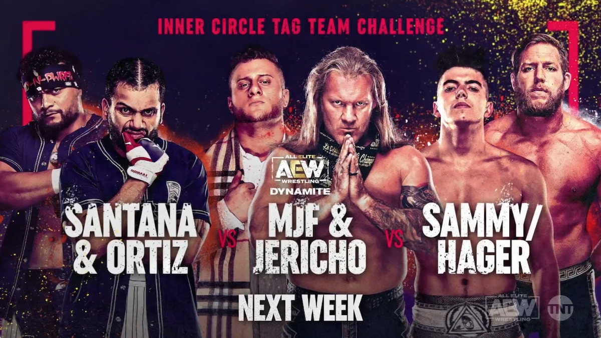 – Inner Circle Tag Team Challenge: Chris Jericho & MJF vs. Santana & Ortiz vs. Sammy Guevara & Jake Hager