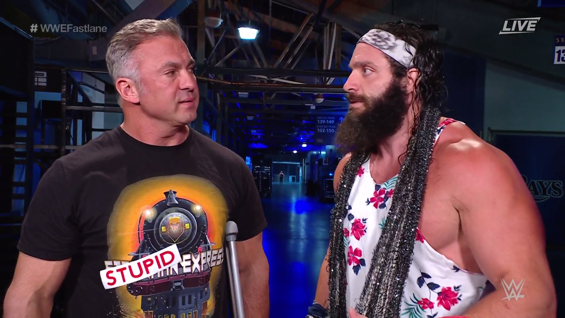 Shane McMahon is walking backstage on a crutch. Elias and Jaxson Ryker walk up to him. Elias wants to perform at WrestleMania. McMahon says he has an idea.