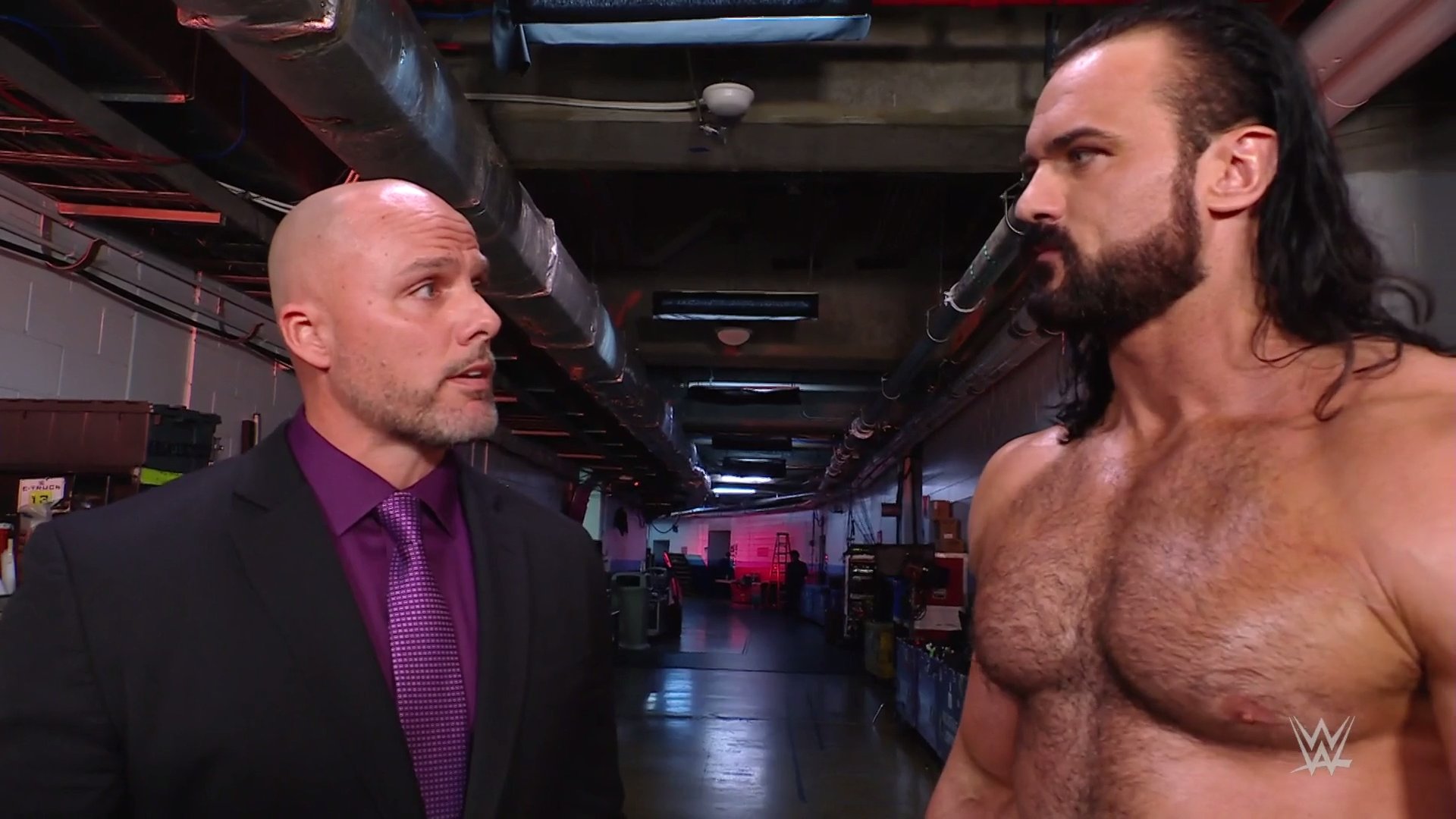 Drew McIntyre is walking backstage when WWE Official Adam Pearce walks up to him. Pearce doesn’t understand why McIntyre came to Sheamus’ defense after they destroyed each other over the past few weeks. Pearce says Cedric Alexander and Shelton Benjamin want a 2-on-1 Handicap Match against McIntyre, but it’s not sensible. McIntyre says he can make it sensible. Bobby Lashley did whatever it took to win the title and will do whatever it takes to keep it. If McIntyre beats them, they’re banned from ringside at WrestleMania. Pearce agrees to it.
