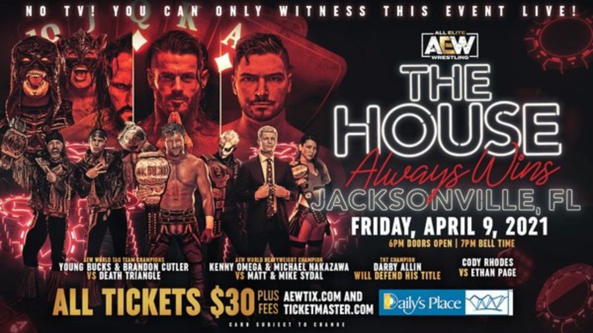 AEW recently announced the full card for their first-event house show event called The House Always Wins. This non-televised event takes place tonight starting at 7PM EST.
