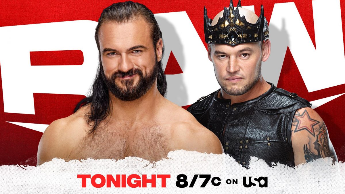Drew McIntyre makes his way to the ring for the final Raw before WrestleMania. Footage is shown of King Corbin attacking Drew McIntyre last week on Raw.