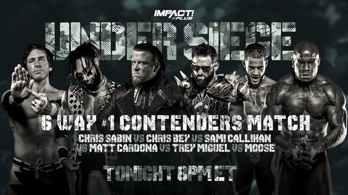 Who will be Kenny Omega’s first challenger for the IMPACT World Title? We’re about to find out in our Under Siege main event! All six competitors square off in an impromptu gauntlet style showdown as they jockey for position. Callihan hits Trey with the Death Valley Driver. Cardona sends Moose back-first into the steel guardrail with a basement dropkick. Trey and Bey hit stereo Tope Con Hilo dives, colliding with everyone on the floor. Bey is trapped in the Tree of Woe but ends up sending Callihan and Cardona for a ride! Miguel goes coast-to-coast, delivering a dropkick to the jaw of Bey. Moose hits his signature delayed dropkick on Sabin. Moose hits a thunderous Superplex on Trey but gets caught with Bey’s Frog Splash from the other corner! Callihan breaks the count with a chair, then hits an Exploder suplex on Bey! Sabin connects with a DDT Flatliner combo to both Callihan and Cardona. Cardona hits Moose with Radio Silence but Callihan goes low on Cardona just seconds later! Callihan goes for the Package Piledriver on Cardona when he’s jumped by The Good Brothers! It looks as though Sabin has the match won with the Cradle Shock but Moose pulls the referee off the count. Moose targets the surgically repaired knee of Sabin, then hits the Spear to win the match and become the new #1 contender!