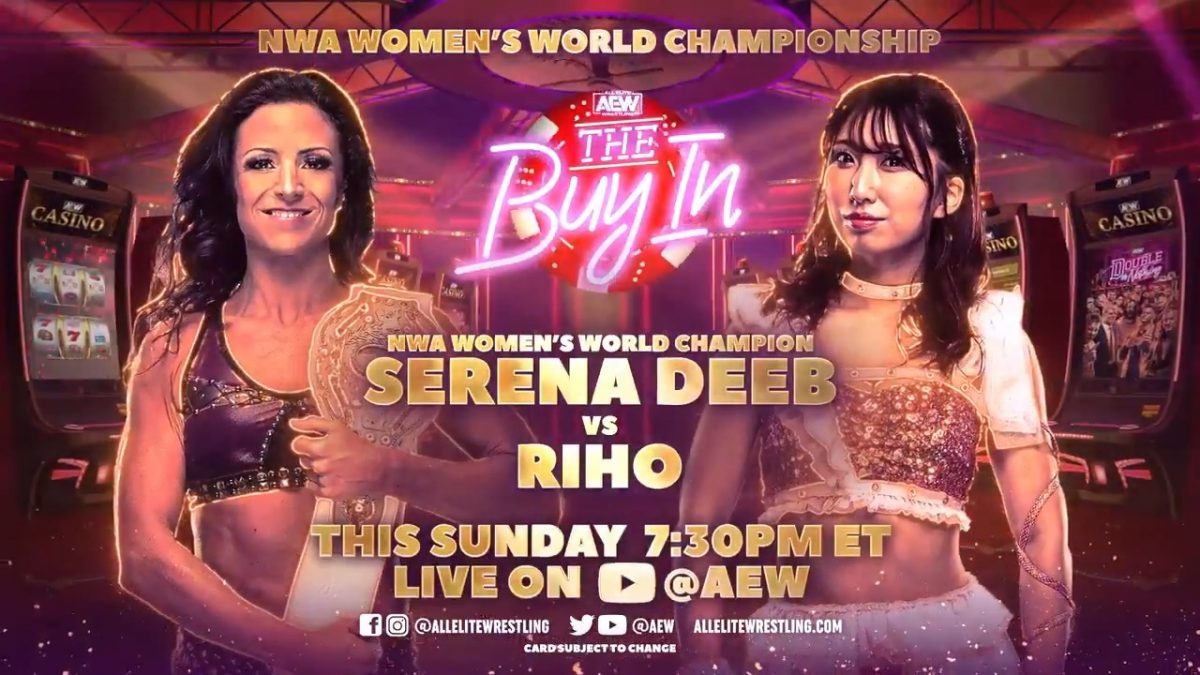 Huge title bout set for Sunday’s #AEWDoN #BuyIn 7:30pm – https://t.co/bYIyuAIUGa After retaining on #AEWDynamite @SerenaDeeb will defend the @NWA Women’s World Title vs. the former AEW Women’s World Champ @riho_gtmv!