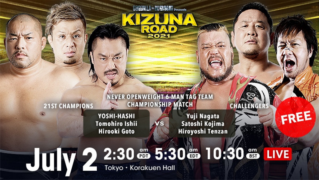 Yuji Nagata, Satoshi Kojima, & Hiroyoshi Tenzan vs. YOSHI-HASHI, Tomohiro Ishii, & Hirooki Goto (c)