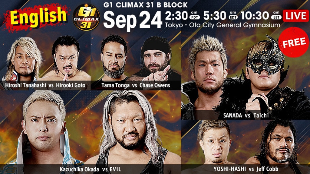 - G1 Climax 2021 B Block match – Kazuchika Okada defeated EVIL via Rainmaker (pinfall 21:46)