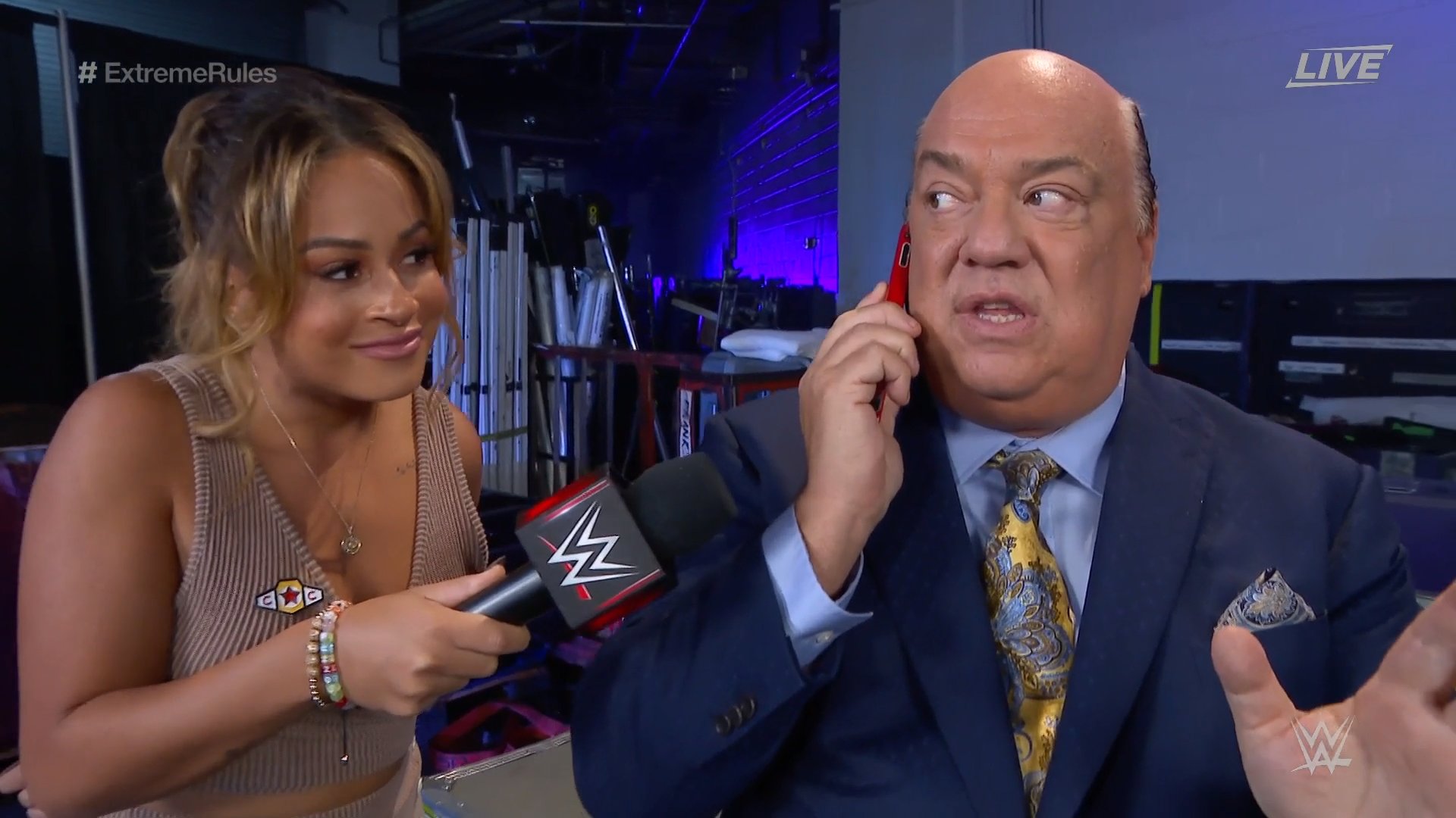 Paul Heyman is talking to someone backstage when Kayla Braxton sneaks up on him. She asks who he’s talking to. Heyman says he could be talking to Brock Lesnar before leaving to celebrate with The Usos.
