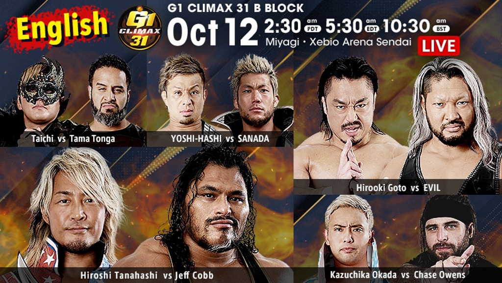 Here is the full card for Night 15 of NJPW’s G1 Climax 2021 tournament, which takes place on October 13th at the Xebio Arena Sendai in Miyagi, Japan. Night 15 airs live on New Japan World starting at 5:30AM EST.