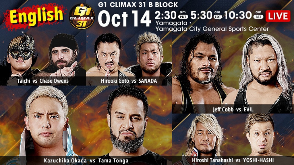 - G1 Climax 2021 B Block match – Tama Tonga defeated Kazuchika Okada via Underhook Piledriver (pinfall 24:45)