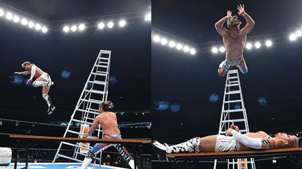 KENTA’s injury occurred near the end of his match against Hiroshi Tanahashi for the IWGP United States Heavyweight Championship. Tanahashi pushed KENTA off of a very tall ladder resulting in KENTA crashing hard onto a trash can in the ring and getting his face busted open. Following the spot, Tanahashi placed KENTA on top of a table and hit a High Fly Flow from the same ladder onto KENTA through the table.