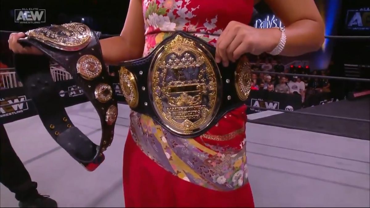 The new belt is also larger than the old one, which was very small compared to AEW’s other belts, including the other women’s title, the TBS Championship.