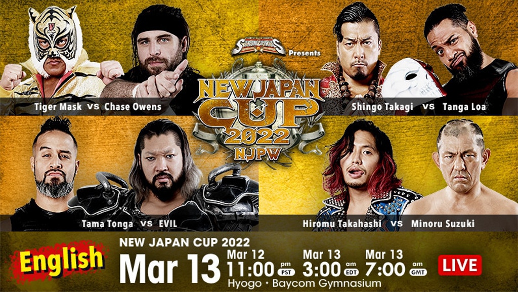 Here is the partial card for Night 8 of NJPW’s New Japan Cup 2022 tournament, which takes place on Monday, March 14th at the Takamatsu City General Gymnasium in Kagawa, Japan. Night 8 will air live on New Japan World starting at 6:00AM EST.