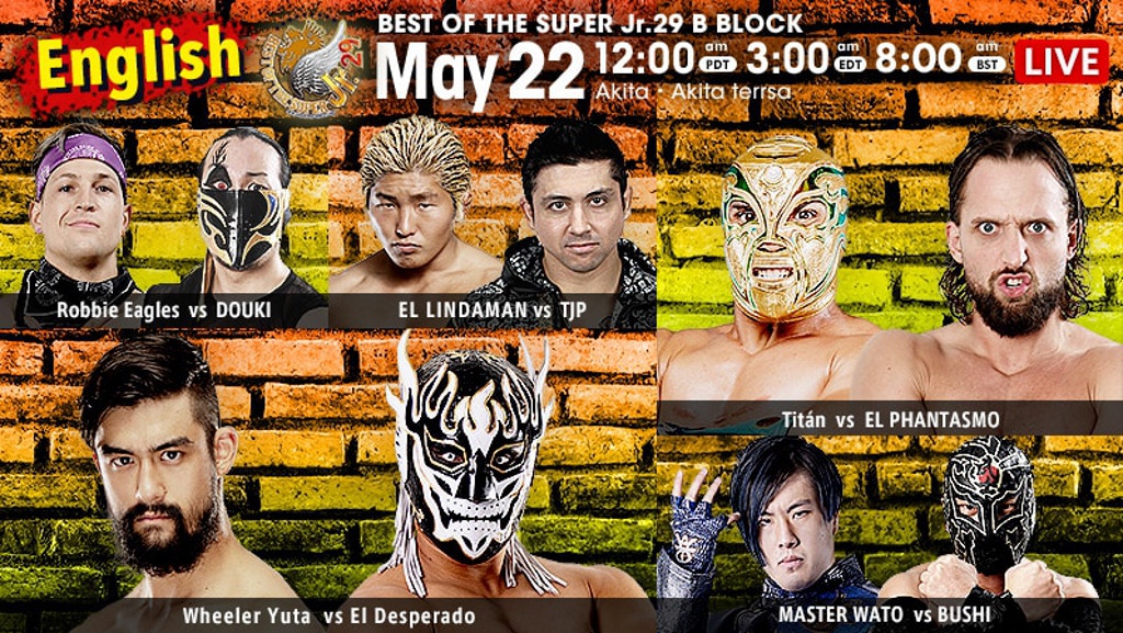 - Best of the Super Juniors B Block match – Master Wato vs. Robbie Eagles
