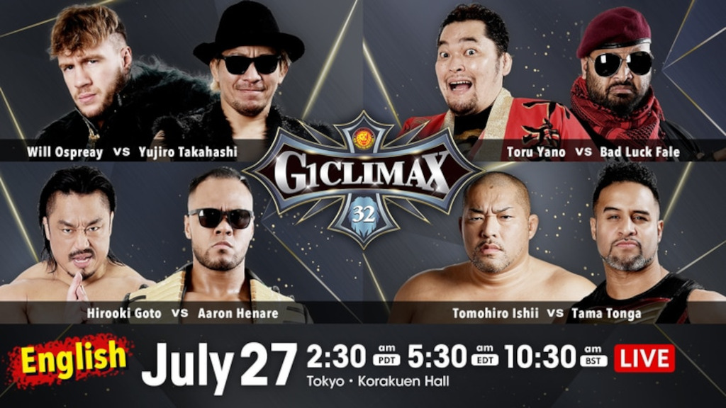 - G1 Climax 2022 D Block match – Will Ospreay defeated Yujiro Takahashi via Hidden Blade (pinfall 11:17)