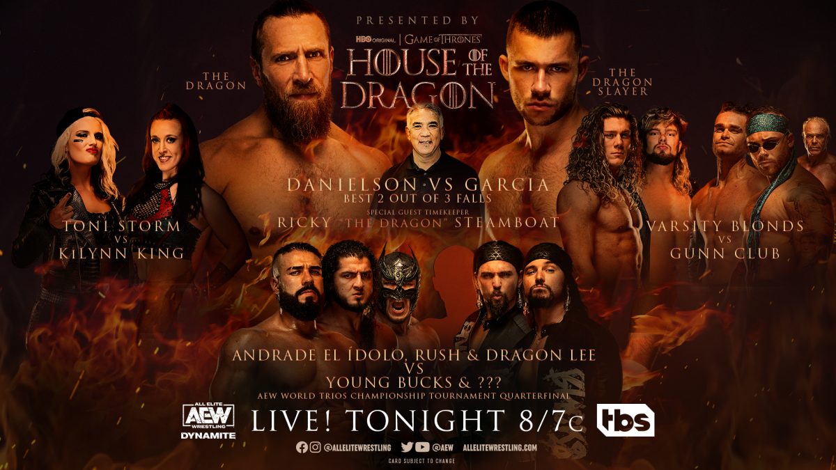A special intro video blends AEW highlights with House of the Dragon (Game of Thrones) clips.