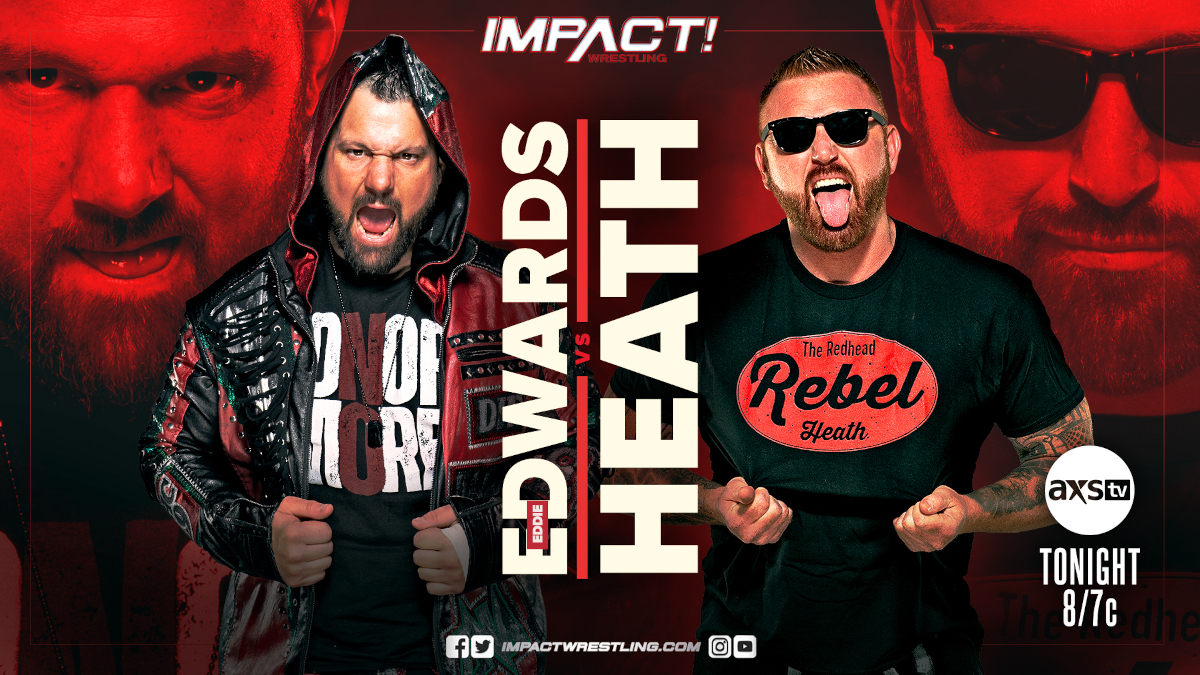Heath’s path of vengeance continues as he goes one-on-one with the leader of Honor No More, Eddie Edwards! The bell rings and Edwards jumpstarts the match by attacking Heath while he’s taking his shirt off. Heath quickly turns the tide, forcing Edwards to retreat to the floor. Edwards delivers a thumb to the eye, then takes Heath off his feet with a running clothesline. Heath plants Edwards face-first into the mat and sends him over the top rope to the floor. Edwards is in total control as he starts to play mind games. Heath looks for an opening to build momentum but Edwards shuts him down with a clothesline. Both men are down following a double crossbody in the middle of the ring. Heath connects with the Wake Up Call on Edwards when Mike Bennett hits the ring gets a Wake Up Call of his own. The referee is distracted by Bennett, allowing Edwards to go low on Heath. Edwards capitalizes with the Boston Knee Party to win!
